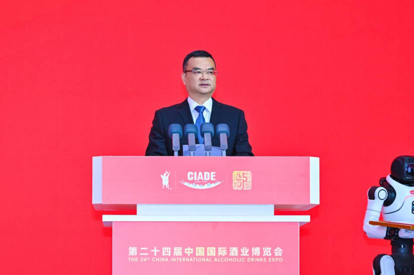 工業(yè)和信息化部消費(fèi)品工業(yè)司一級巡視員郭翔在致辭中表示,本屆酒博會契合高質(zhì)量發(fā)展、高水平開放的時代共識,行業(yè)需遵循“傳承為根、創(chuàng)新為魂、文化為脈、開放為徑”原則,以數(shù)智化、綠色化、國際化為核心引擎推動高質(zhì)量發(fā)展。郭翔還對行業(yè)發(fā)展提出三點(diǎn)希望,即以品質(zhì)筑牢產(chǎn)業(yè)升級底色,適配消費(fèi)新趨勢、推動產(chǎn)業(yè)向“賣生活” 轉(zhuǎn)變;以數(shù)智激發(fā)傳統(tǒng)產(chǎn)業(yè)亮色,加快技術(shù)賦能、推動釀造從“經(jīng)驗”向“科學(xué)”轉(zhuǎn)化;以開放拓寬國際合作成色,推動酒類產(chǎn)品雙向交流、提升中國釀酒產(chǎn)業(yè)國際影響力。工信部將持續(xù)強(qiáng)化政策引導(dǎo)與服務(wù)保障,支持四川建成全球影響力的千億級白酒產(chǎn)業(yè)集群,助力釀酒產(chǎn)業(yè)守正創(chuàng)新、高質(zhì)量發(fā)展。
