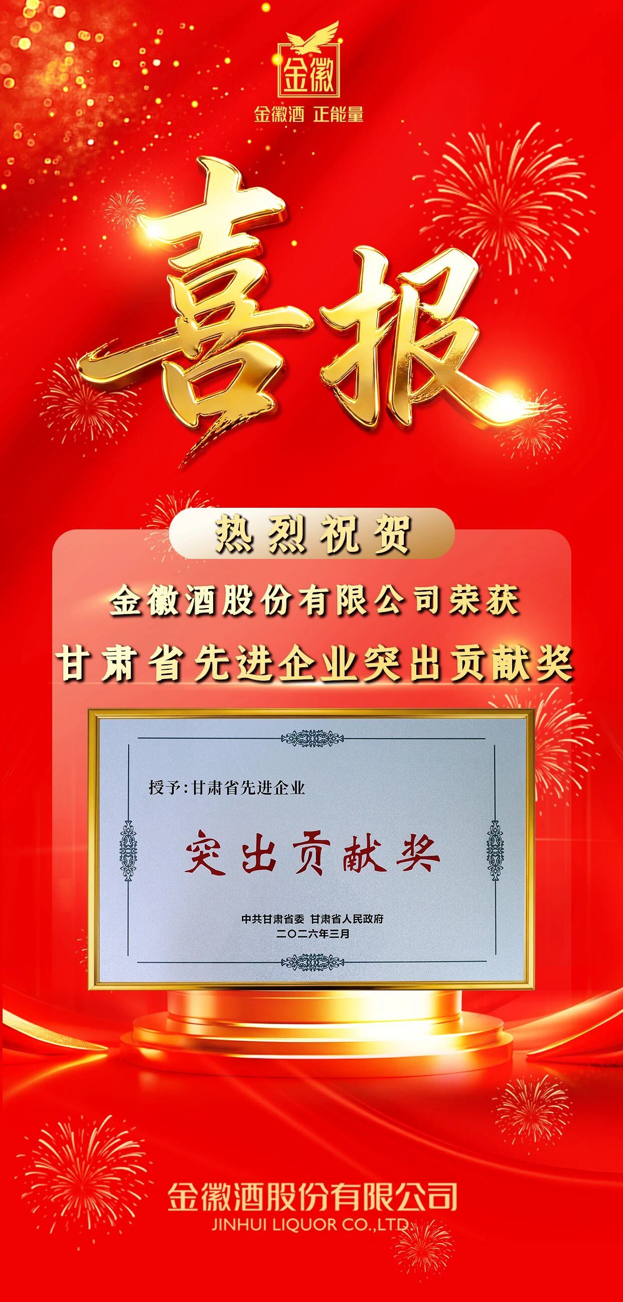 近日,在甘肅省委、省政府隆重召開的全省強工業大會上,金徽酒股份有限公司以高質量發展、科技創新、產業賦能及社會貢獻等領域的突出表現,被授予“甘肅省先進企業突出貢獻獎”殊榮。這一榮譽不僅是對金徽酒多年來深耕白酒主業、引領產業升級的高度認可,更是對公司作為隴酒領軍企業持續賦能地方經濟、推動工業高質量發展的充分肯定。