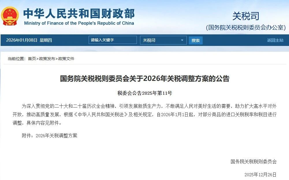 近日,國(guó)務(wù)院關(guān)稅稅則委員會(huì)發(fā)布的《2026年關(guān)稅調(diào)整方案》顯示,2026年,我國(guó)將對(duì)935項(xiàng)商品實(shí)施低于最惠國(guó)稅率的進(jìn)口暫定稅率,部分產(chǎn)品的稅率顯著下調(diào)。
